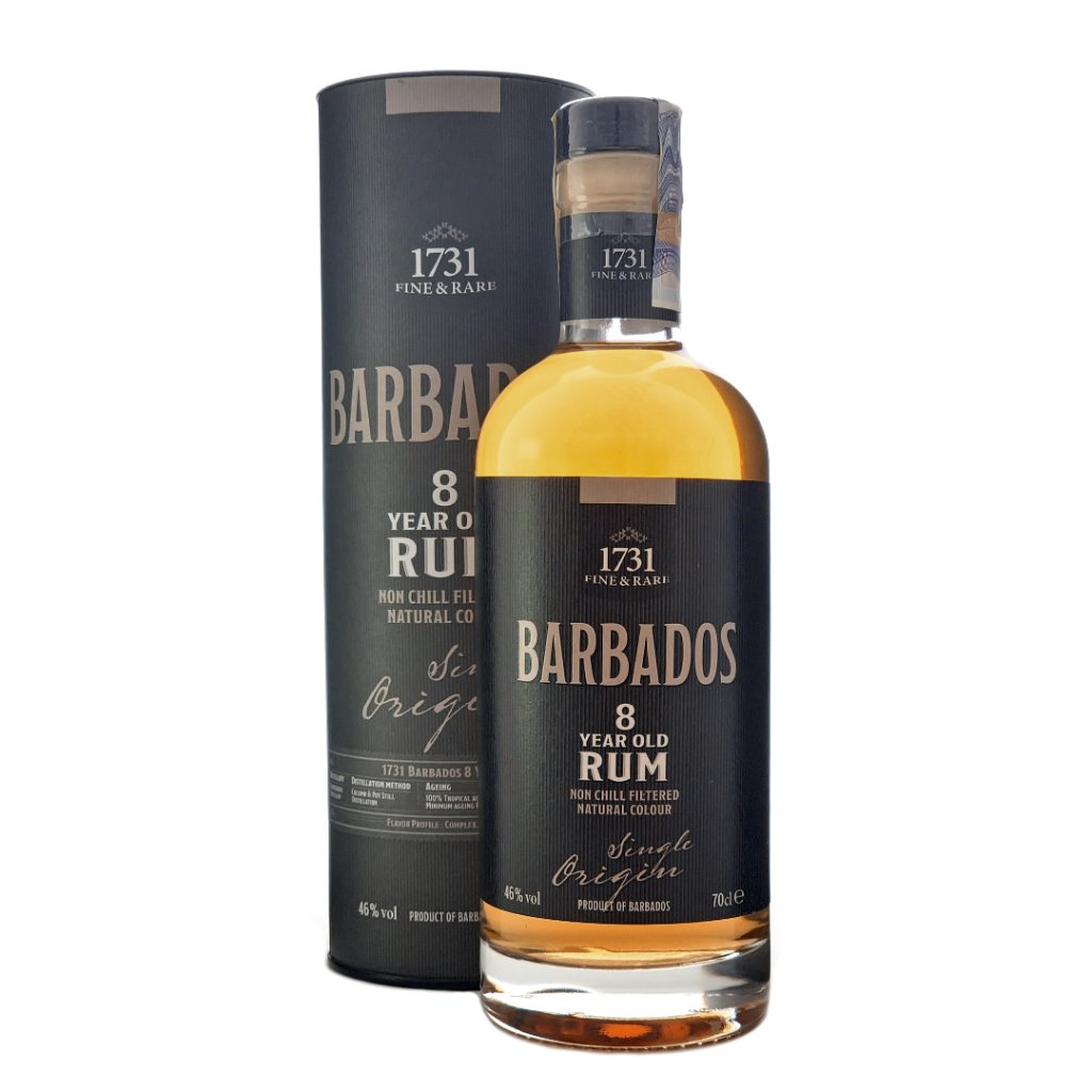 1731 Barbados 8YO Single Origin Rum je prémiový rum s obsahem alkoholu 46 %, pocházející z palírny na Barbadosu a lahvovaný nezávislou nizozemskou společností 1731 Fine & Rare. Vůně je bohatá a příjemná, s tóny zralého tropického ovoce, jako je mango a banán, doplněnými vanilkou, karamelem a jemnými náznaky koření a dubu. Na patře je rum vyvážený, hladký a lehce sladký, s chutí karamelu, vanilky, sušeného ovoce a nádechem kořeněného dubu, který přechází do středně dlouhého, teplého a jemného závěru.