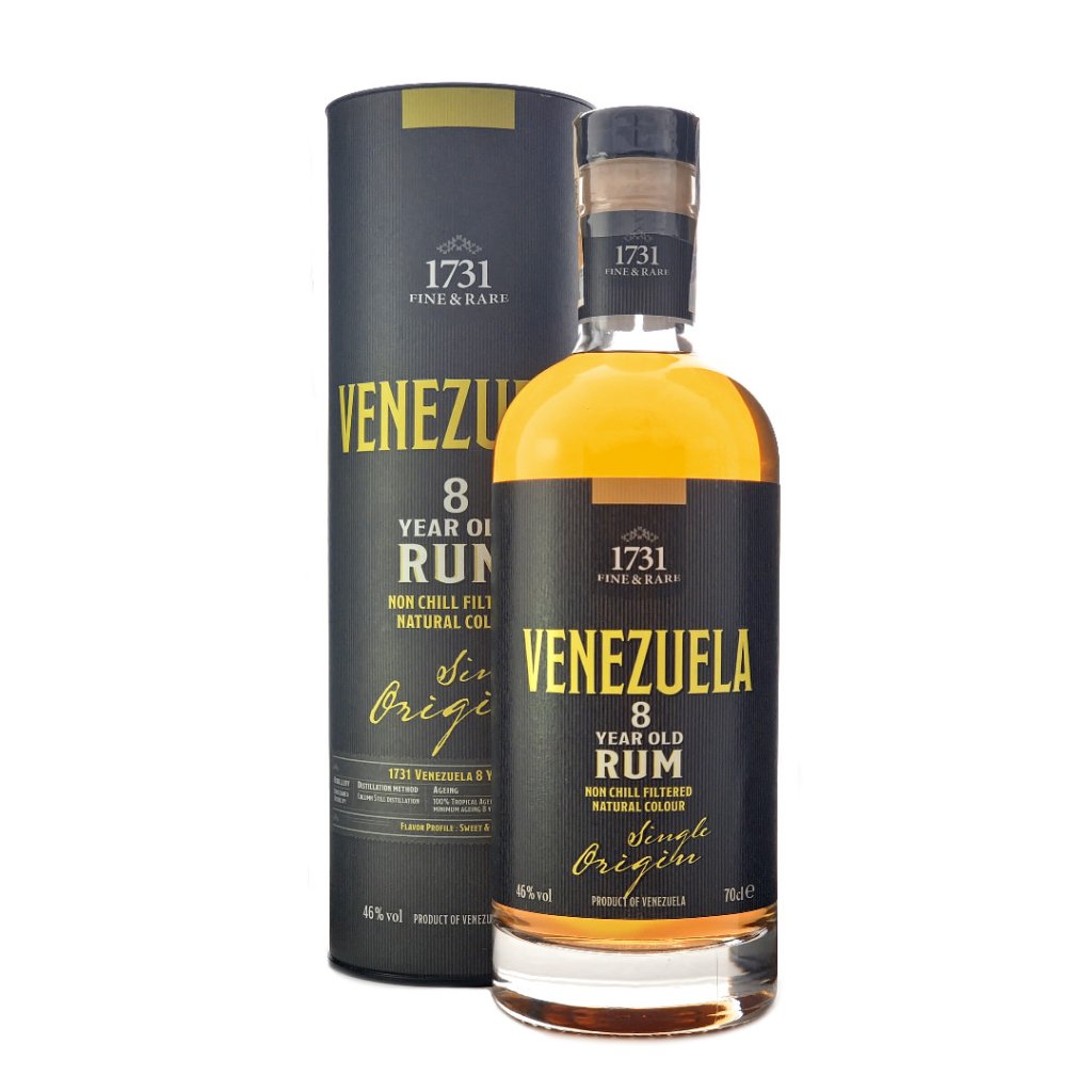 1731 Venezuela 8YO Single Origin Rum je prémiový rum s obsahem alkoholu 46 %, pocházející z Venezuely a lahvovaný nezávislou nizozemskou společností 1731 Fine & Rare. Vůně je přitažlivá a komplexní, s tóny sladké vanilky, karamelu, tropického ovoce a jemnými kořeněnými nuancemi, jako je skořice a muškátový oříšek. Na patře je rum středně plný, hladký a vyvážený, s chutí vanilky, karamelu, sušeného ovoce a lehké kořenitosti, která přechází do dlouhého, sladkého a komplexního závěru.