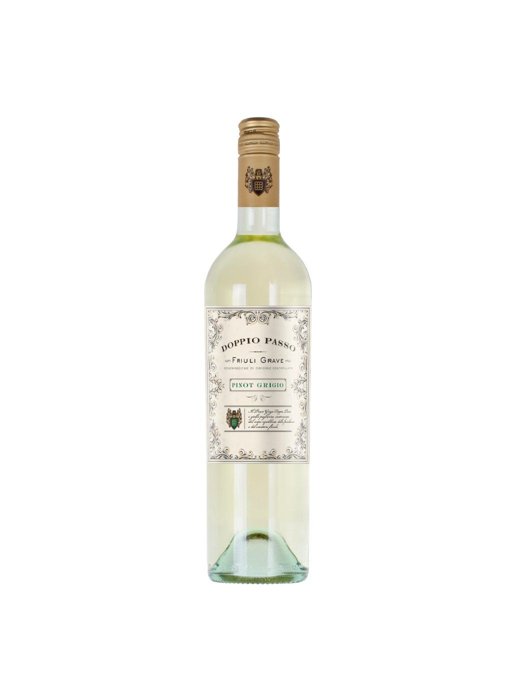 Velmi vyvážené víno z Itálie. Zárukou kvality je značka Doppio Passo, známá především díky výtečnému Primitivu. Tento Pinot Grigio (u nás známý jako Rulandské šedé), je velmi příjemným vínem světle žluté barvy. Aroma je květnaté s náznaky ovoce. Chuť je příjemně harmonická, s tóny zralých hrušek.