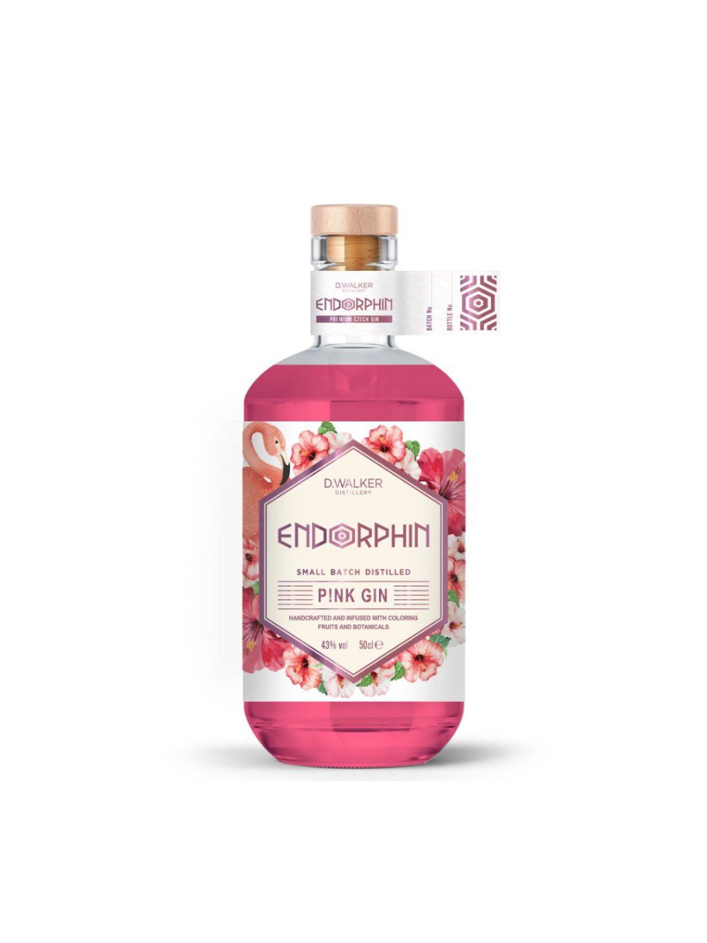 Endorphin Pink Gin je svěží růžový gin vycházející z receptury London Dry, ale s jemnějším důrazem na jalovec, zaobleným tělem a hladkým závěrem. Vyrábí se průtahovou destilací velejemného lihu, ve kterém se zhruba 40 hodin maceruje směs jalovce, koriandru, lesních plodů a dalších lokálních i exotických bylin a koření. Květinovou chuť, vůni citrusů a růžové zabarvení získává infuzí přes vaporizační komoru, kde jsou ve vrstvách uloženy byliny, květy a citrusové kůry – bez umělých barviv, stabilizátorů i přidaného cukru. Ve vůni dominuje ovocná paleta lesních plodů a citrusů, v chuti vede jalovec, který doplňuje jemná ovocná svěžest a lehký tón puškvorce a anděliky v příjemně zakulaceném závěru.