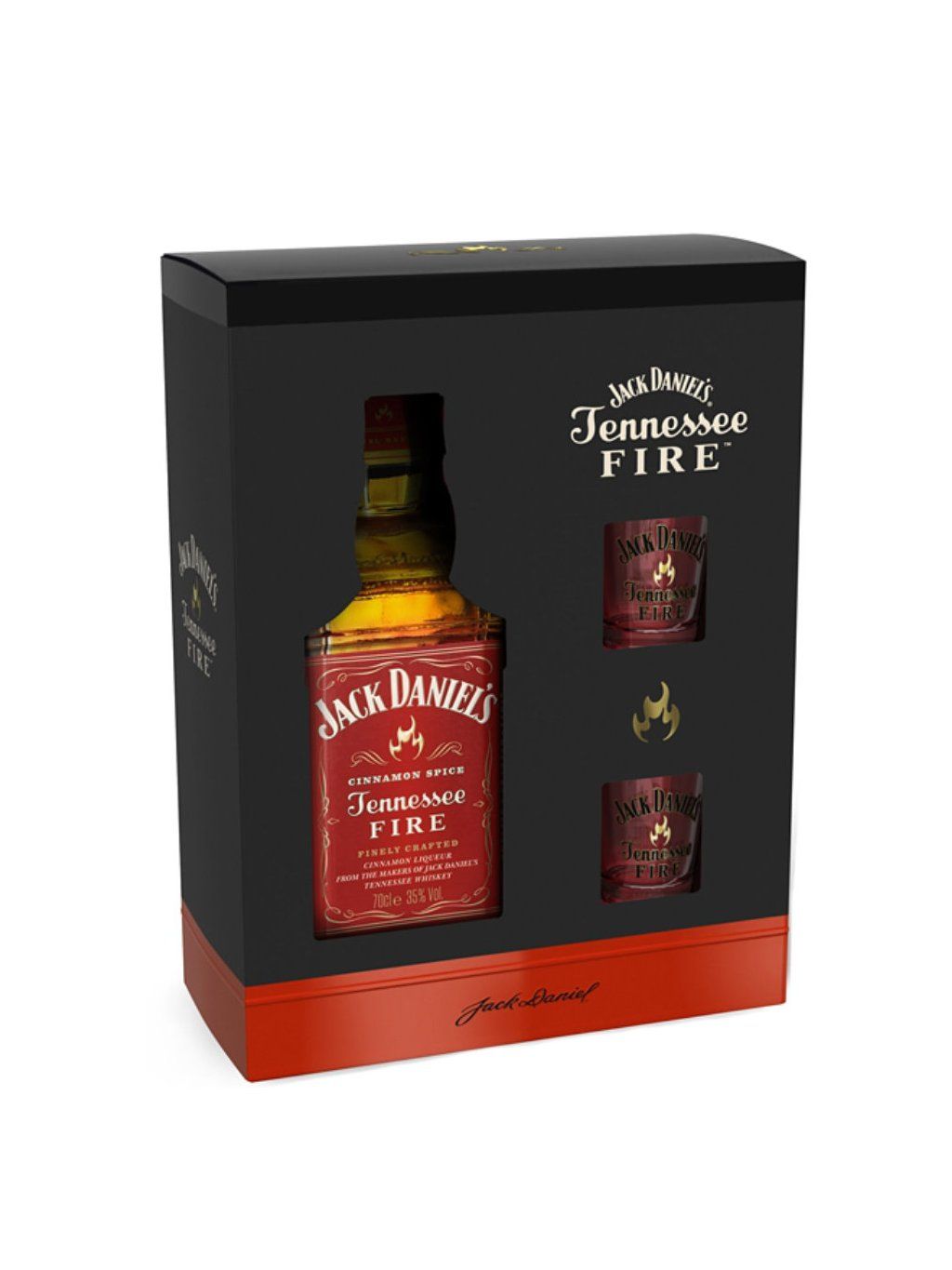 Dárkové balení, které obsahuje Jack Daniels Fire a dvě krásné sklenice, z nichž tento jedinečný likér z kvalitní americké whiskey z Tennessee chutná úžasně!