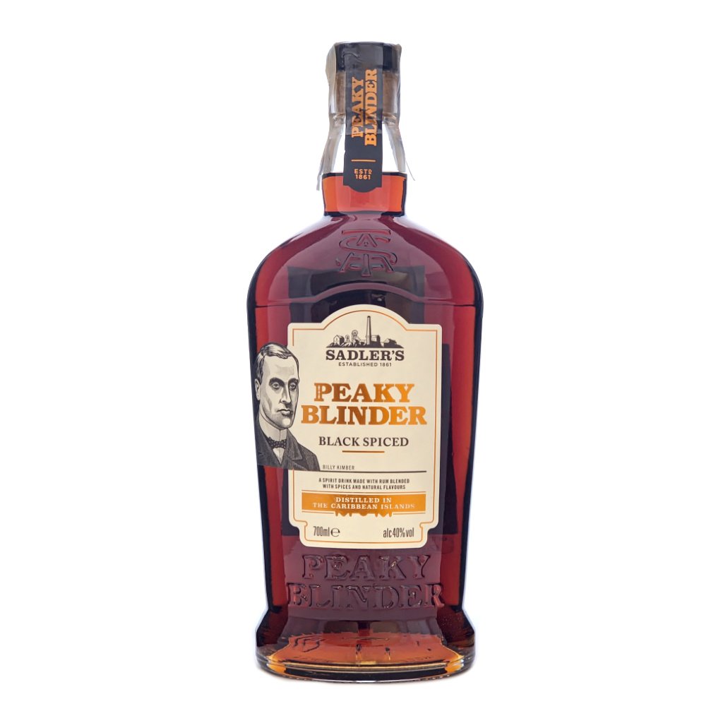 Peaky Blinder Black Spiced Rum je tmavý kořeněný rum inspirovaný gangem z Birminghamu, známým ze seriálu Peaky Blinders. Vyrábí ho rodinná destilerie Sadler’s s tradicí od roku 1861. Pochází z oblasti Black Country ve Velké Británii. Rum zraje v sudech po sherry Pedro Ximenez, což mu dodává jedinečnou chuť. Je obohacen kořením jako skořice, vanilka, hřebíček a pomerančová kůra. Nabízí aroma ananasu, toffee a vánočního pečiva s jemným zemitým dozvukem.
